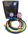 Манометричний колектор чотирьох вентильний CT 860 G R 410AШкали фреонів нанесені на манометри: R22 / R134а / R32 / R410а. В комплекті чотири заправні шланги довжиною 150 см :1/4 - 1/4 - 2 шт1/4 - 5/16 - 2 шт