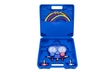 Поставляється в кейсі, в комплекті: три заправні шланги довжиною 150 см, різьба 1/4 SAE, з білими пластиковими кільцями-ущільнювачами на різьбі, дві швидкознімні муфти QC-19 L /QC-19 H під фреон R134A.