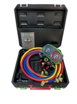 Двохвентильна манометрична станція з кульовими вентилями та оглядовим склом Super Stars ST B 268 з діаметром манометрів 68 мм для роботи з фреоном R22 / R404a / R407 / R410a.