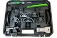 У комплектацію входять 7 змінних насадок з алюмінія для труб розміром : 1/4, 5/16, 3/8, 1/2, 5/8, 3/4, 7/8 (6 мм, 8 мм, 10 мм, 12 мм, 16 мм, 19 мм, 22 мм) , універсальний рімер олівець з двома лезами . Набір поставляється у пластиковому кейсі.