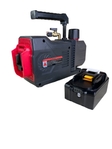 Вакуумний насос використовуються для створення вакууму шляхом відкачування газу з герметичної ємності. Насоси використовуються для обслуговування холодильного обладнання для заправки холодоагентів CFC, HCFH і HFC, таких як R12, R22, 134a, R32, 410а,1234yf та інші. Високий кінцевий вакуум і висока швидкість перекачування досягаються за рахунок інтегральної конструкції циліндра з високою точністю. Ручка з м'якою гумовою підкладкою полегшує транспортування та використання виробу.Температура навколишнього середовища для належної роботи становить 5°C - 40°C. Насосу не дозволяється працювати більше 3 хвилин коли вхідний патрубок піддається впливу атмосфери. Щоб забезпечити найкращу продуктивність насоса, рекомендується використовувати масло з низькою в'язкістю 32 - 46. Масло насоса необхідно замінити негайно, якщо воно емульговано або забруднено. Масляний резервуар обладнаний великим масляний вікном з шкалою, щоб контролювати рівень масла всередині. Має додатковий кран що перекриває потік між насосом та ємністю. Працює від літій-іонної батареї 18v 5000mAh.